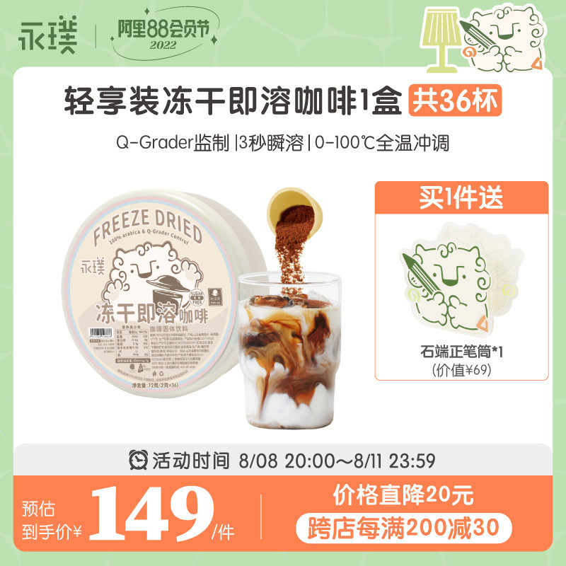 【买1件送石端正笔筒*1】冻干黑科技,3秒即溶,喷雾干燥而成,冲一杯美味咖啡只需要2.8克纯咖啡粉,真正无添加,随时随地一杯好咖啡~~永璞|轻享装飞碟冻干纯黑咖啡粉3秒即溶 意式风味0蔗糖 2g*36杯咖啡_麦片_冲饮