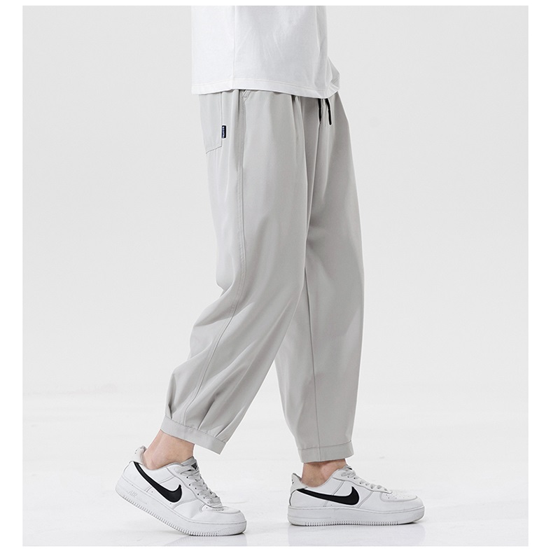 【夏季必备冰丝休闲裤!百搭又显瘦,回头率杠杠的~】韩版冰丝小脚修身速干运动裤,休闲与时尚兼并的运动裤,吸湿速干,排汗效果好,而且面料超轻,轻薄透气,运动更自由,宽松版型,包容性更高,不挑人!今年冰丝裤子男士九分裤束脚休闲裤速干夏季薄款直筒透气宽松大码男装