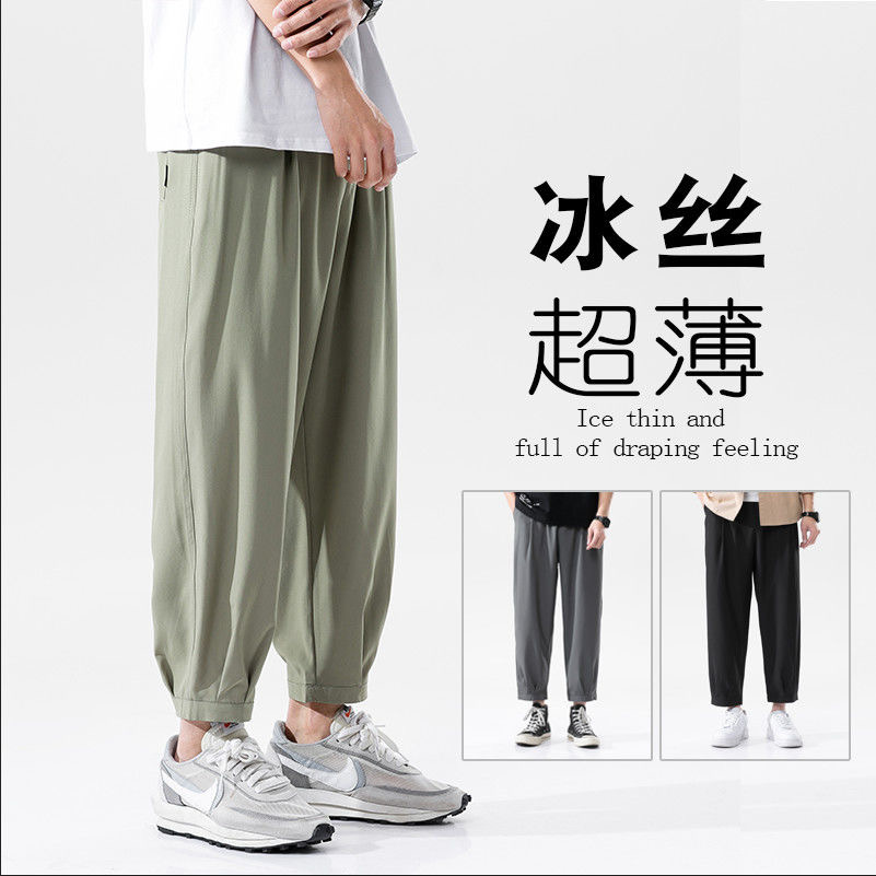 今年冰丝裤子男士九分裤束脚休闲裤速干夏季薄款直筒透气宽松大码