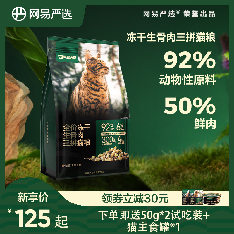 【送主图赠品】92%动物性原料+50%鲜肉,添加300亿益生菌网易天成全价冻干生骨肉三拼猫粮成猫幼猫全价冻干猫粮宠物_宠物食品及用品