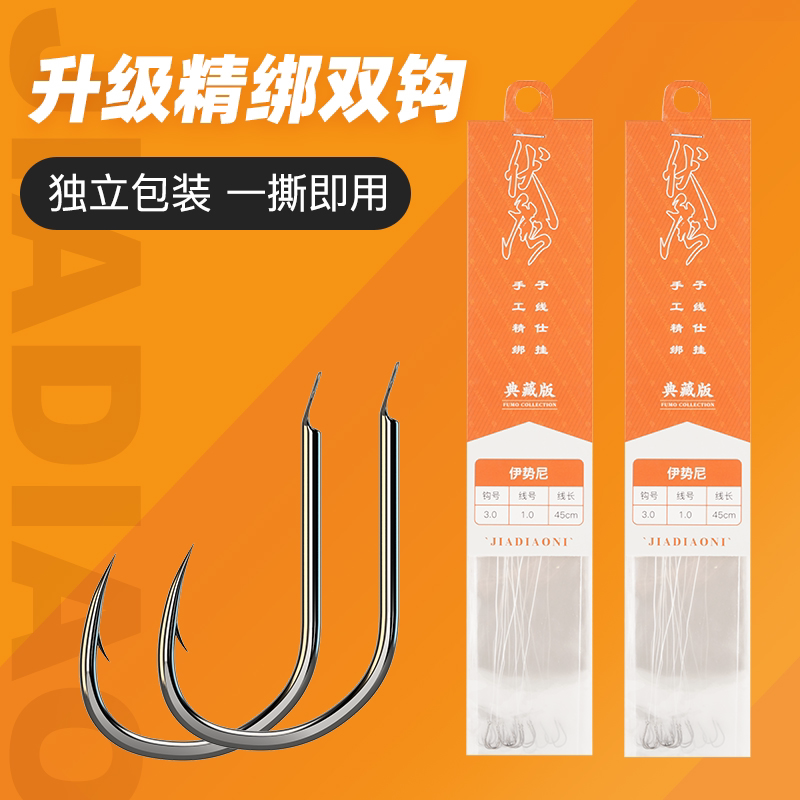 绑好子线双钩,防缠绕成品套装,手工精绑钩尖锋利,黑坑竞技无阻倒刺,满足各种水域,佳钓尼伏魔鱼钩绑好子线双钩仕挂成品伊势尼新关东套装全套子线组户外_登山_野营_旅行用品
