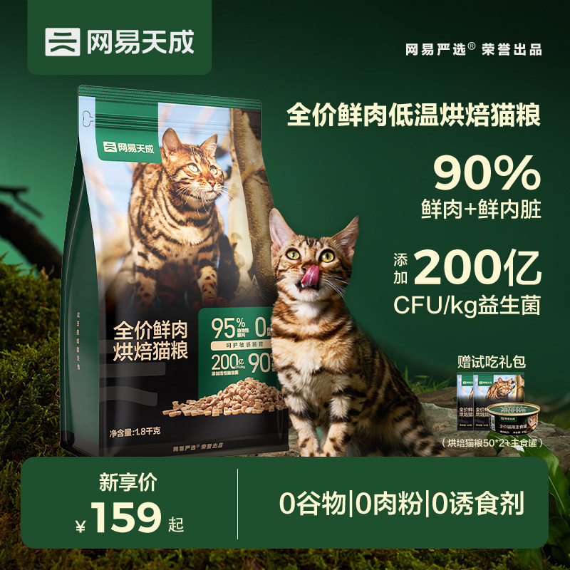 【首单124】鲜肉含量90%,减少肠胃刺激!网易天成低温烘焙猫粮成猫幼猫网易严选全价营养无谷鲜鸡肉烘焙粮宠物_宠物食品及用品