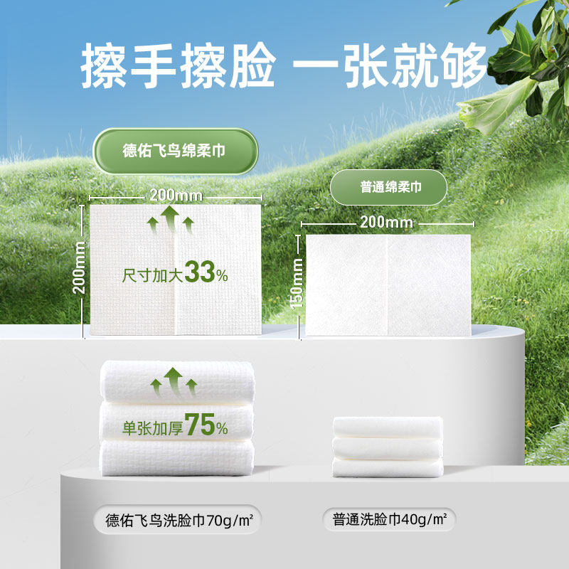 【百补拍下到手6.9元(一包60抽)】大包大容量不掉毛!德佑一次性洗脸巾加厚洁面巾,加厚75%更吸水~擦拭更舒适,大牌用的放心。德佑一次性洗脸巾纯棉柔巾洁面洗面巾抽取式擦脸巾官方旗舰店正品洗护清洁剂_卫生巾_纸_香薰