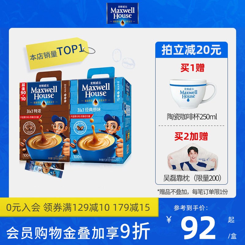麦斯威尔经典速溶三合一特浓原味咖啡100条,满减到手只要73麦斯威尔速溶三合一特浓原味咖啡100条/盒学生咖啡粉官方正品咖啡_麦片_冲饮