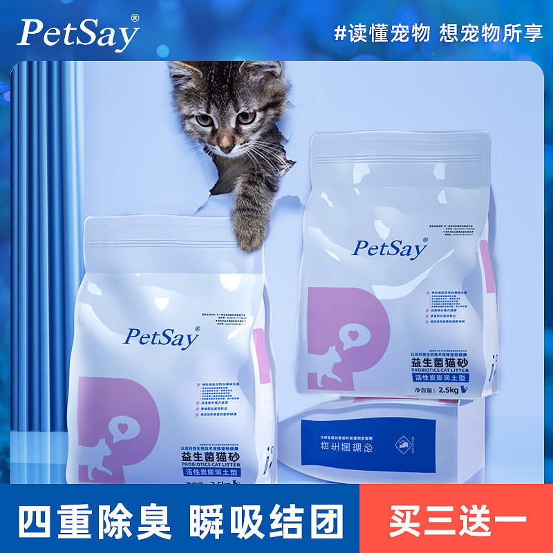 【宠言旗舰店】宠言益生菌天然矿石膨润土猫砂5斤1包装,瞬吸除臭,光速结团,减少致病菌!【退货运费险】宠言益生菌天然矿石膨润土猫砂英短活性炭除臭岩石无尘小粒猫砂宠物/宠物食品及用品