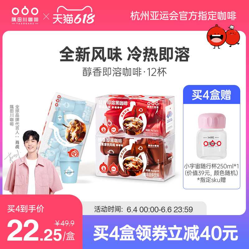 可凑300-50满减,到手21.6元,拍4盒67.5元,平均15.8/盒,更划算~【肖战同款!快抢!买4盒赠250m小宇宙杯*1】隅田川小红杯拿铁黑咖啡12杯,无蔗糖添加,醇厚鲜香的现磨口感,还原咖啡的本真风味,浓香的咖啡味,余味持久,快快抢购吧!肖战同款 隅田川小红杯醇香即溶速溶美式拿铁黑咖啡0蔗糖咖啡粉咖啡/麦片/冲饮