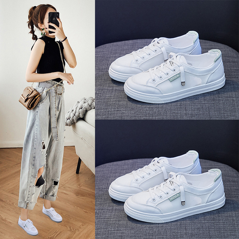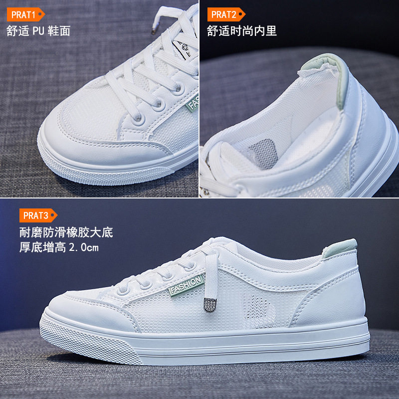 【天猫正品】网面透气百搭运动小白鞋,穿着舒适,轻盈轻质,潮流女鞋,舒适脚感,随性透露着美感,轻便不累脚,宽松舒适不挤脚,品质保证。【赠运费险】黑觅ins韩版小白鞋女皮面2023夏季网面透气学生板鞋女平底休闲鞋女鞋