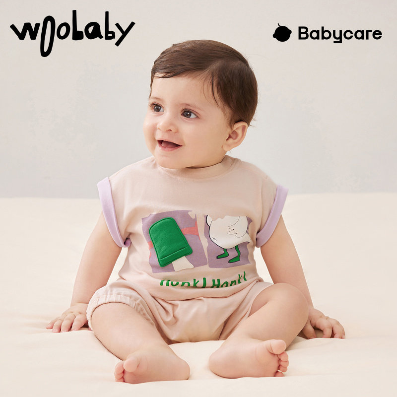婴幼儿级标准!优选精梳棉,柔软舒适、健康亲肤,细腻手感,穿脱方便,安心舒适,更适合宝宝,妈妈的放心选择!wooBaby新生婴幼儿连体衣爬服埃及棉2023夏季满月宝宝包屁衣哈衣童装/婴儿装/亲子装